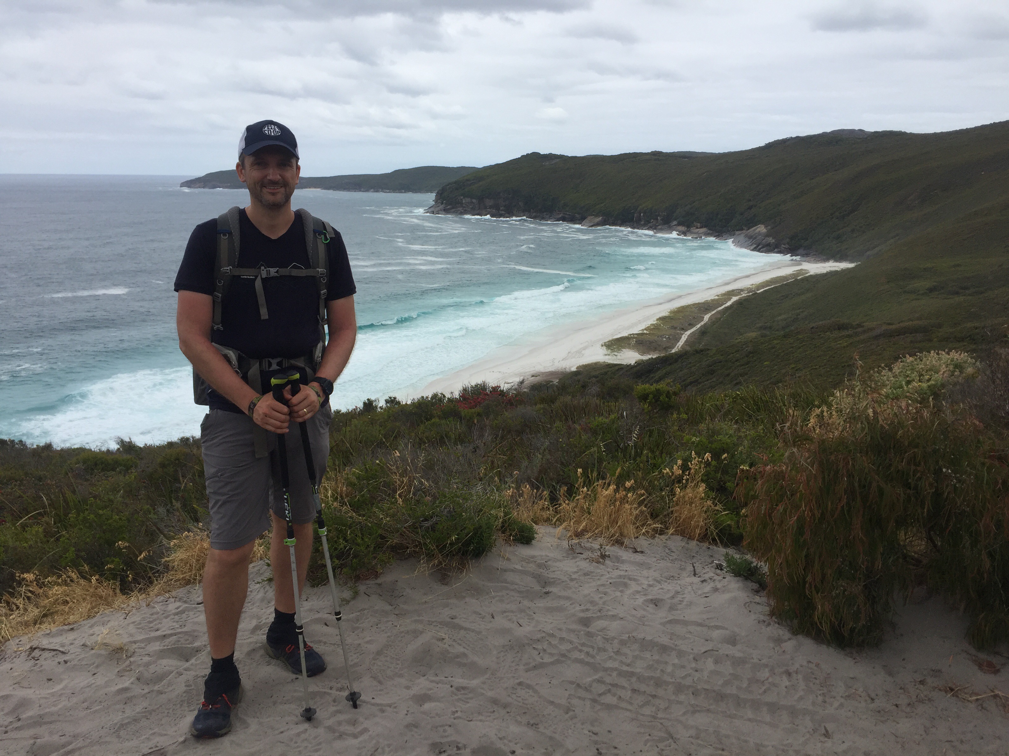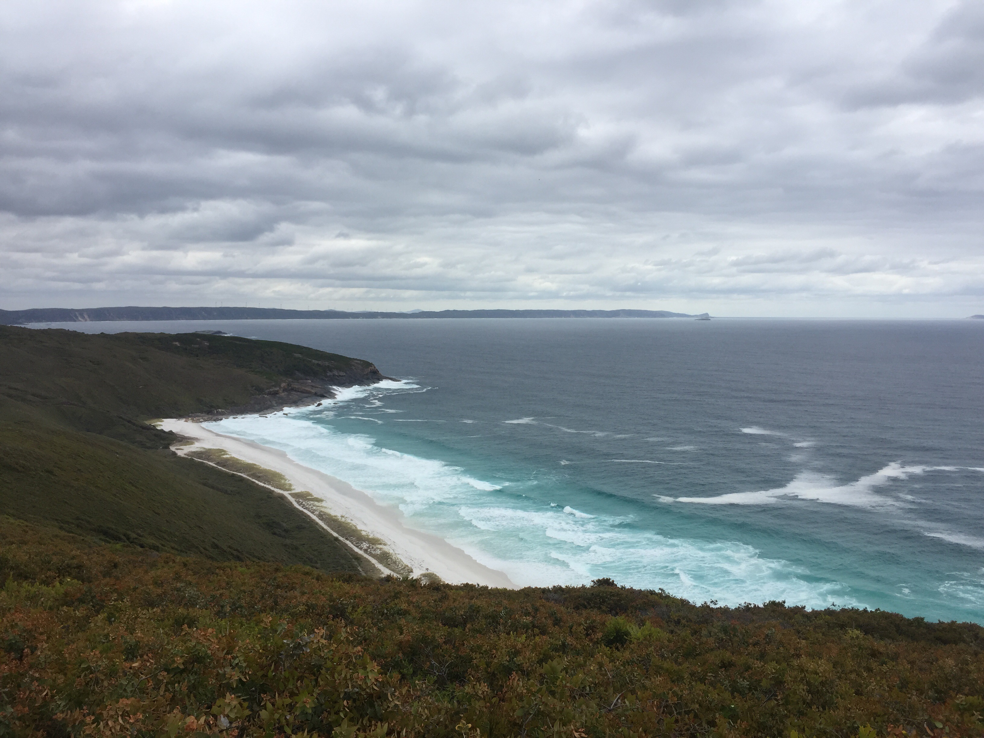 The first 8 km out of camp were through the coastal scrub towards a prominent bluff which then rounds across to the final stretch to Albany. There were some beautiful scenic coastal views in either direction as we hiked east.