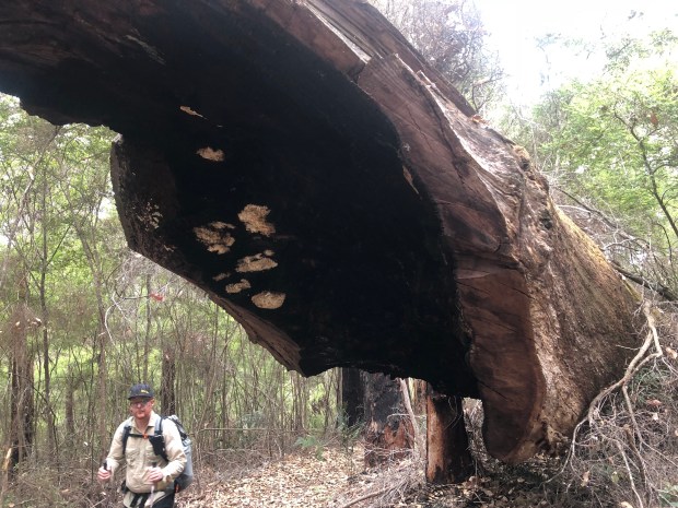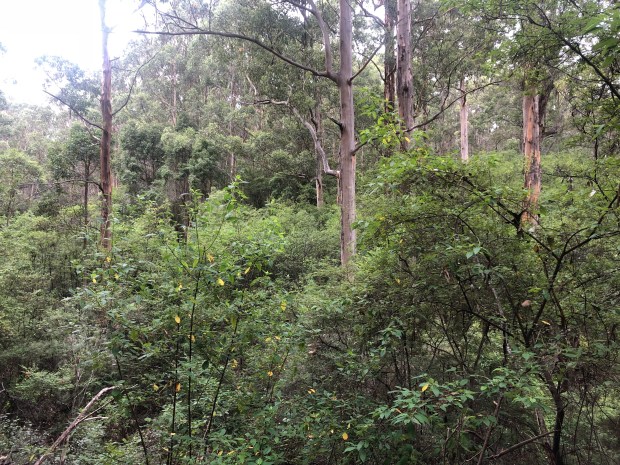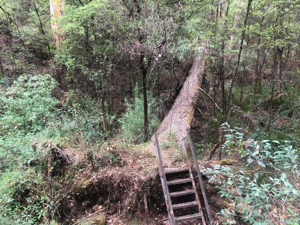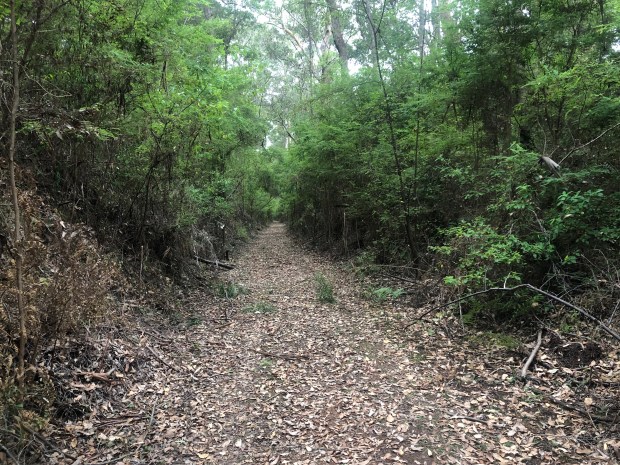 The trail then followed a long straight section which appeared to be an old rail line given how level and straight it was. It so easy just to go on autopilot that I almost missed the tiger snake on the right hand side of the trail. It was only a couple of feet away when I saw it and it then headed off under a log before I could get a photo. That makes three tiger snakes in three days. In my end-to-end sectional hike, I only saw one tiger snake the whole 1,000km.