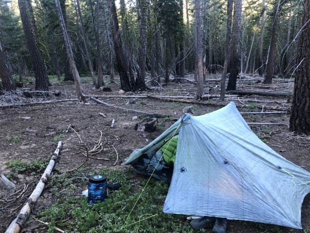 There were some more beautiful views as the trail gradually climbed towards our campsite at Sierra Canyon trail head. We stopped around a quarter of a mile to have dinner. This was primarily to avoid attracting bears to our campsite. Then, we headed up the hill to our campsite just as darkness was falling.
