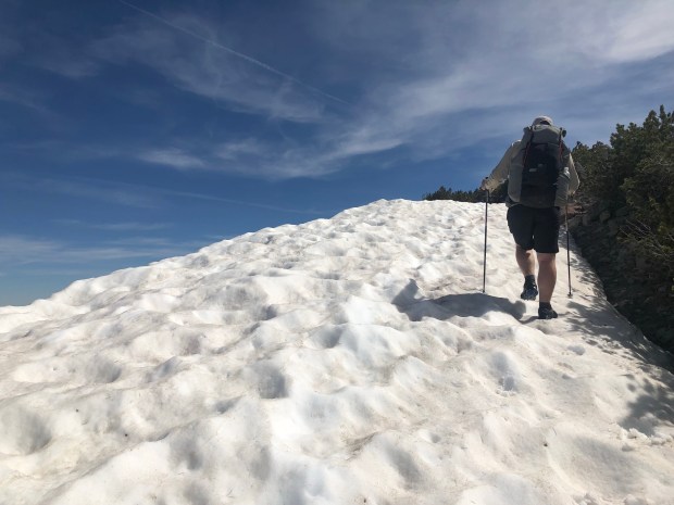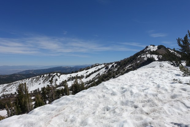 Eventually we reached the summit approach and saw that the whole ridgeline including the summit was under snow.