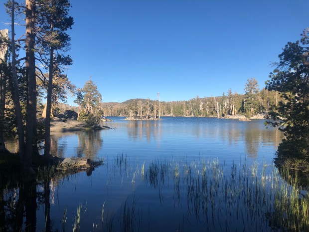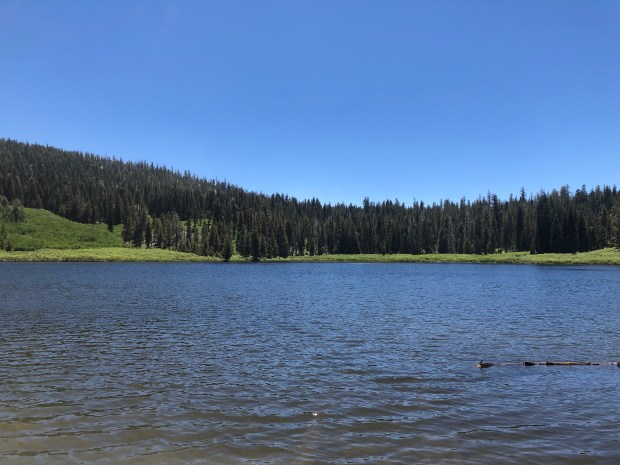 By lunchtime, we had reached Richardson Lake which was a good spot to sit down and have a bite to eat. Apparently, the PCT’ers thought the same thing and there were little groups scattered around the shore of the lake. It was a pleasant stop despite the strong breeze blowing off the lake.