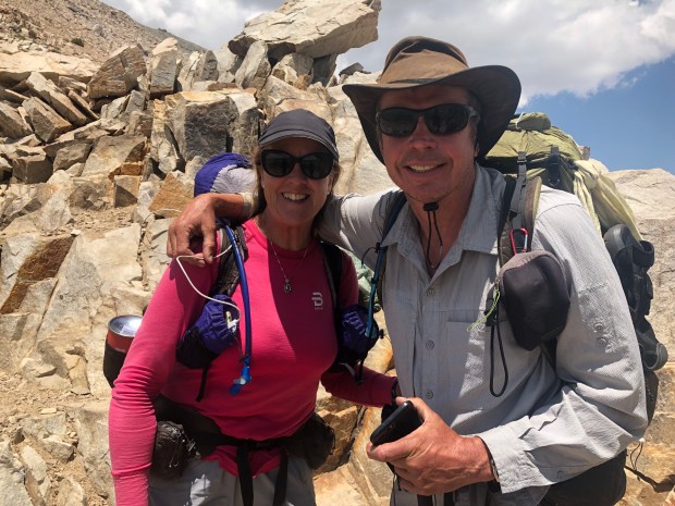 From here, the trail rejoined the JMT proper and descended steeply into Vidette Meadow. On the way down, we bumped into Hob and Marissa who were hiking the PCT. Hob was a double triple crowner meaning he had completed the triple crown of hiking being the Appalachian Trail, the Continental Divide Trail and the Pacific Crest Trail – twice. He was one completion of the PCT away from being one of a handful of triple triple crowners on the planet. A very inspirational person who first hiked the PCT in the 1970s with an external frame backpack when to hike the PCT was to be a pioneer.