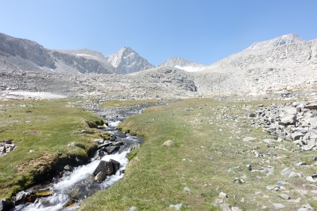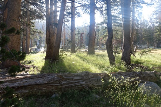 The rest of the descent was fairly straightforward and before long we had passed the Palisade Lakes and we were below tree line. When we reached Tyndall Creek, we had quite a sketchy river crossing. Fortunately another group had just crossed and were able to let us know a good point downstream. It was still sketchy however and was at the limit of where wading would have been more appropriate. It took some skill to safely get across but before long we were on our way on the other side.