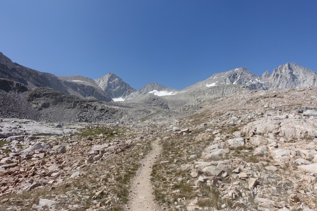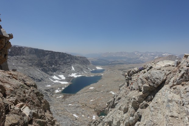 Eventually we reached the top. The view from the top of Forester Pass is stunning, both back the way we came and also south towards the Palisade Lakes and Tyndall Creek.