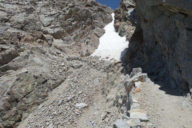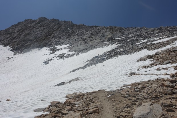 Near the top, whole switchbacks would disappear under snow forcing us to climb upwards from one switchback to another which proved exhausting at 13,000 feet with a full pack on.