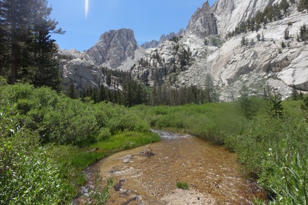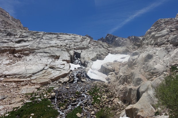 The switchbacks were nice and long and easy but we kept our pace as slow as possible given the altitude we were climbing to. We came across a group who said they had bumped into a pair of hikers earlier who had to abandon their attempt on Whitney due to altitude sickness. In addition, we came across blood which had dried on the trail apparently from someone’s nose bleed, another sign of altitude sickness.