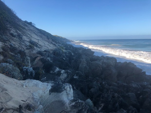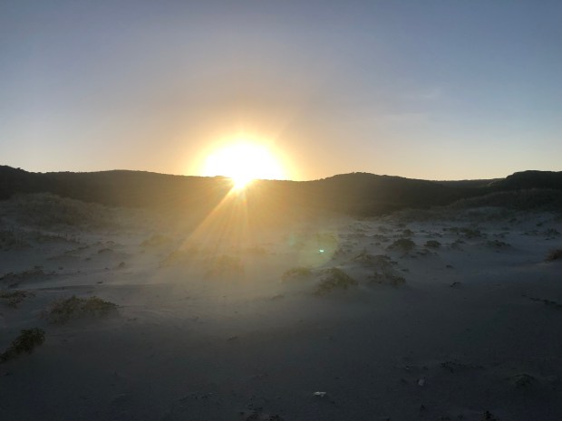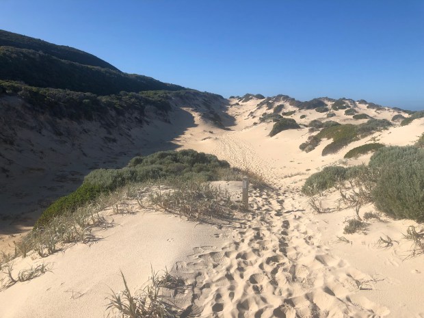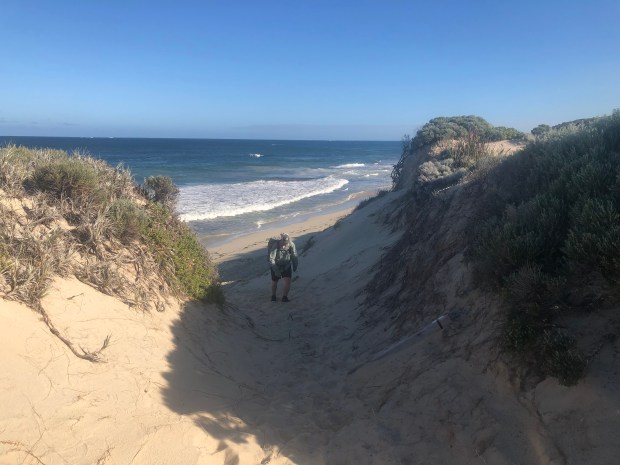 I had a sleep in this morning to a rather luxurious 5.30 AM before the final day on trail. The campsite was very humid and the tents were all saturated with condensation but there was no time to dry them out before hitting the trail by 7 AM and climbing back out through the dunes back onto Deepdene Beach.