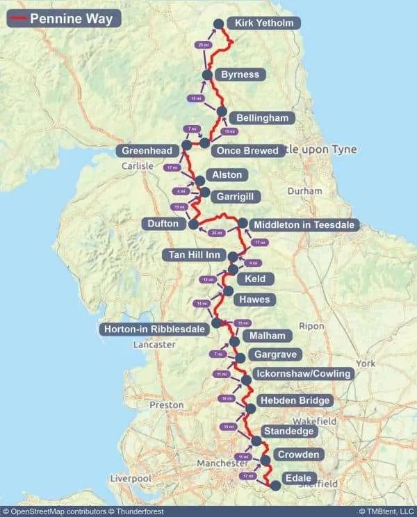 In May and June 2022, I will be hiking the Pennine Way in the UK. The Pennine Way is a 268 mile (435 km) long distance trail stretching from Edale in the south to Kirk Yetholm just over the Scottish border.