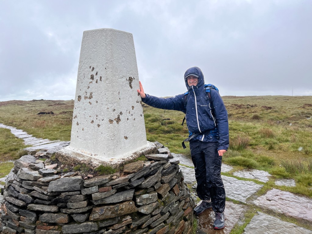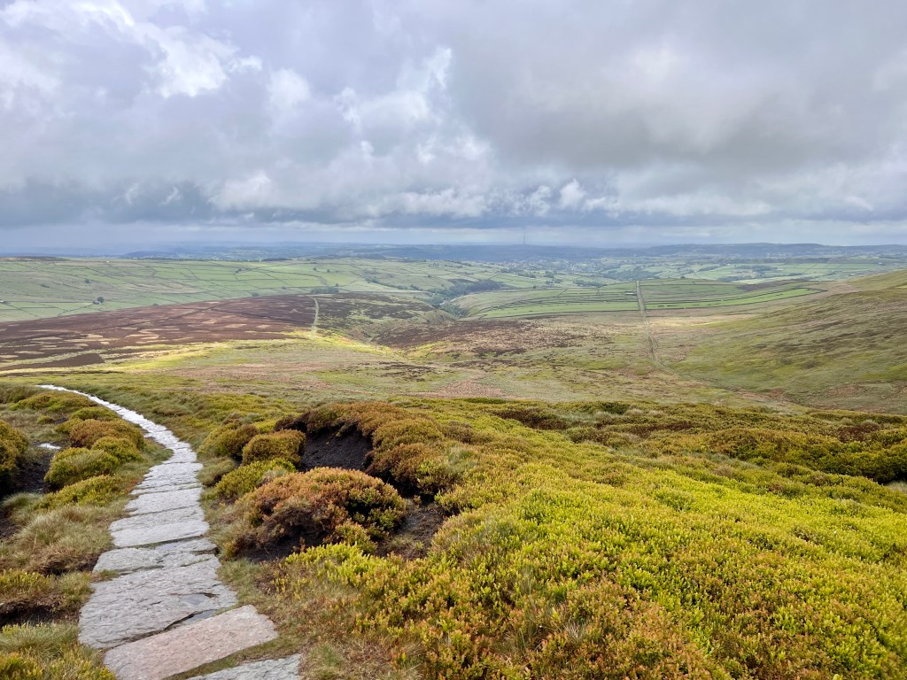 At Black Hill the weather really closed in so we only stopped briefly for a photo before moving on. This area of the Pennine Way used to be notorious for indistinct paths through peat bogs and was badly eroded. I remember many years ago nearly sinking into a peat bog after stepping on the wrong spot and almost losing my footwear in the process. Fortunately it is now paved and much easier.