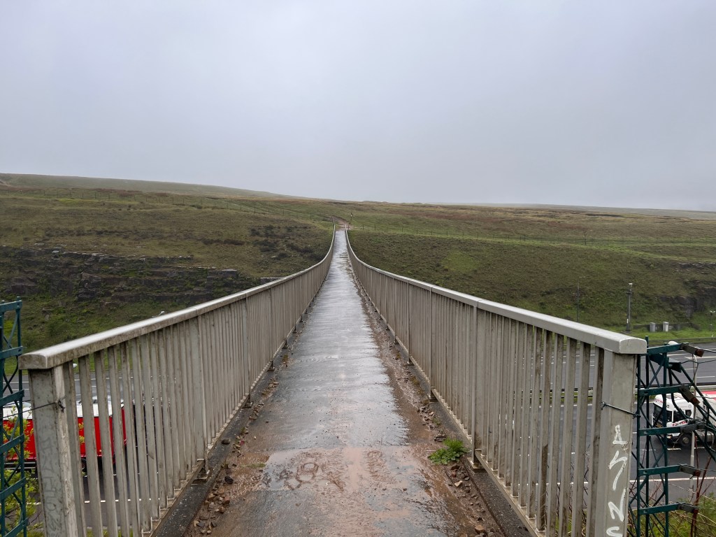 Our first target for the day was the Pennine Way crossing over the busy M62. Normally you can hear this long before you see it, but on this occasion the wind and rain simply drowned everything out. On top of this, my waterproof trousers failed completely in the weather and I was saturated from the waist down.