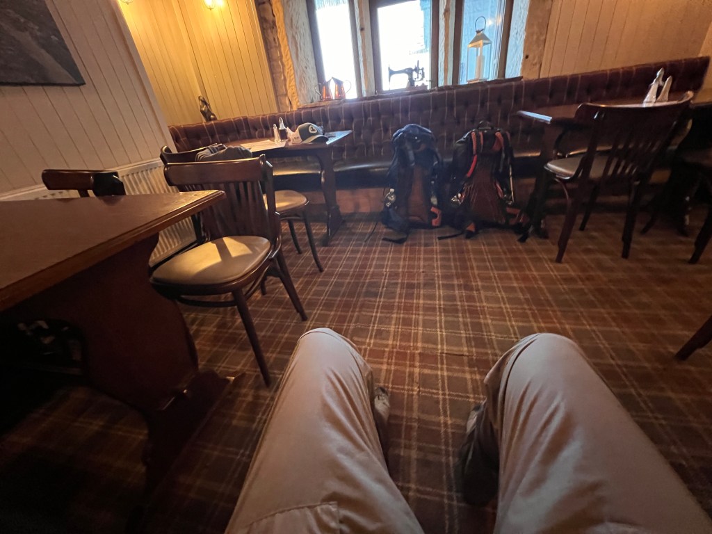 It was an early start today, mainly because I’d set my alarm incorrectly and then it was too hard to get to sleep. The forecast today was for rain until 4pm at which point it would clear up. We had a full breakfast made by the pub owner before it was time to head off.