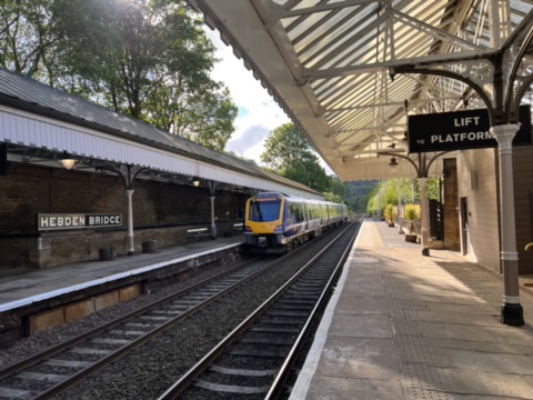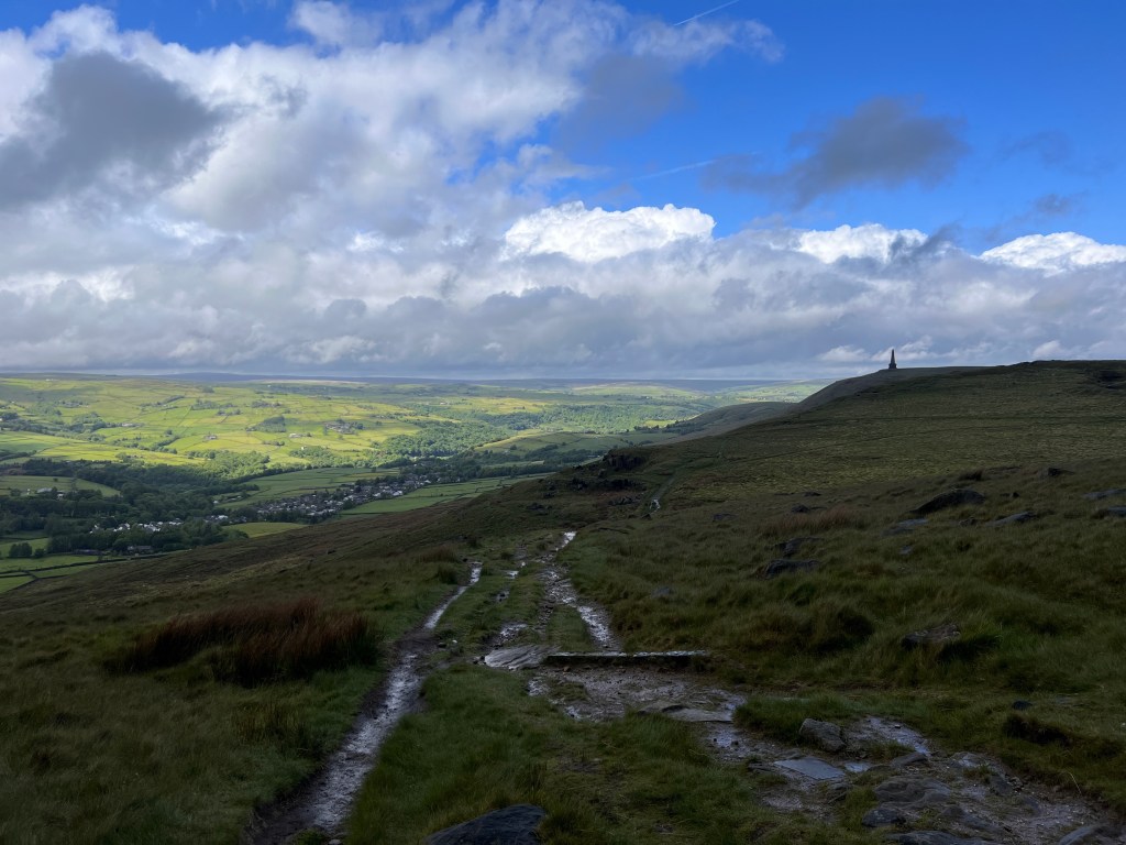 We were able to climb up inside to the viewing area up some pitch black steps. After nearly bring blown off the hillside, we continued on to Hebden Bridge. As we descended into the valley, the wind was now blocked by the hills and the sun started to come out. As we walked downwards through the fields and beech woodland, it became a very pleasant end to the day.