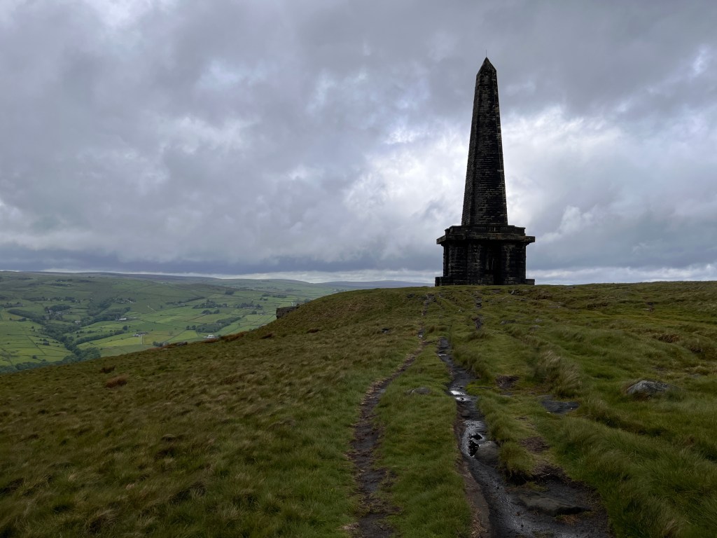 We then began the long walk towards Stoodley Pike, a memorial built in the mid-Victorian era as a monument to the Napoleonic Wars. It seems somewhat incongruous in the middle of the moorland and is visible from miles away. The good news was that the rain had now eased off and it was really just the strong winds to deal with.