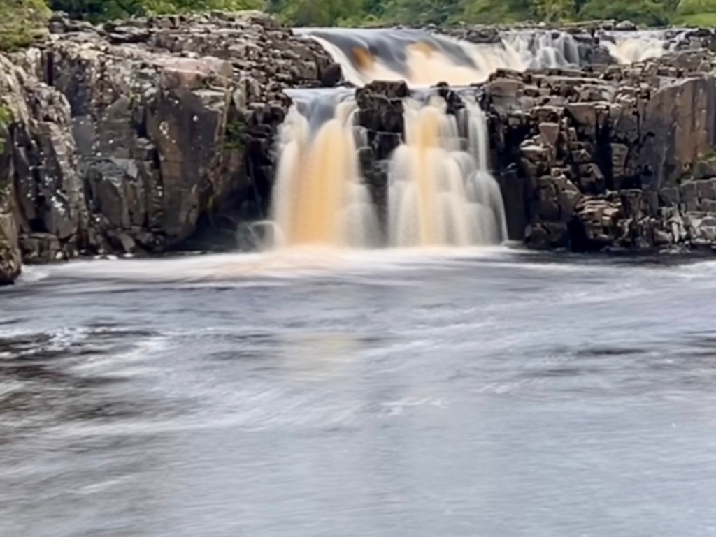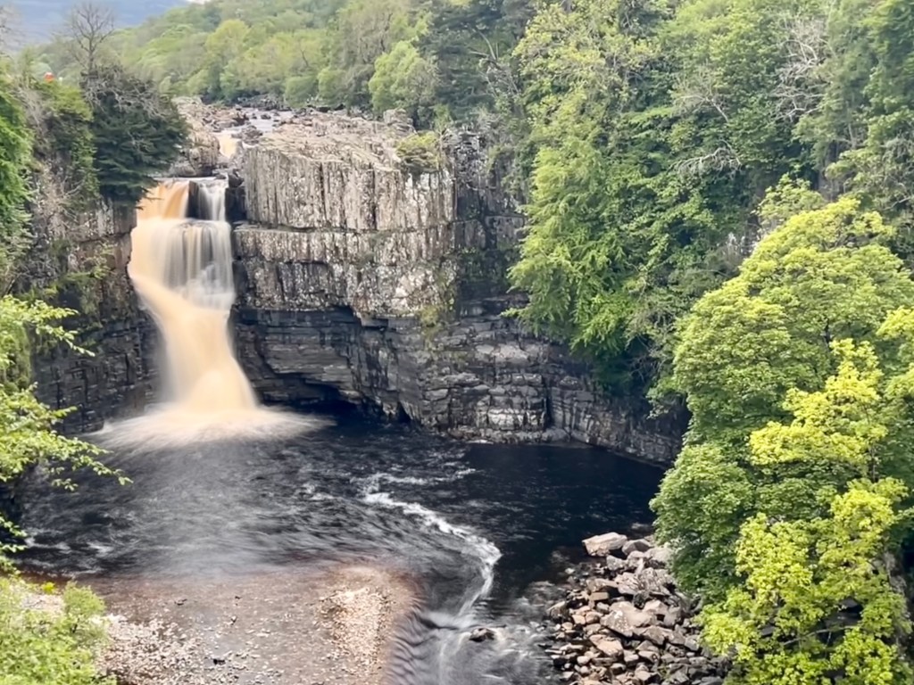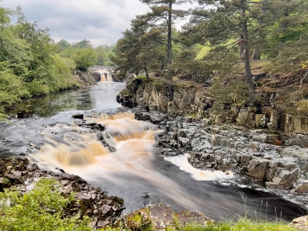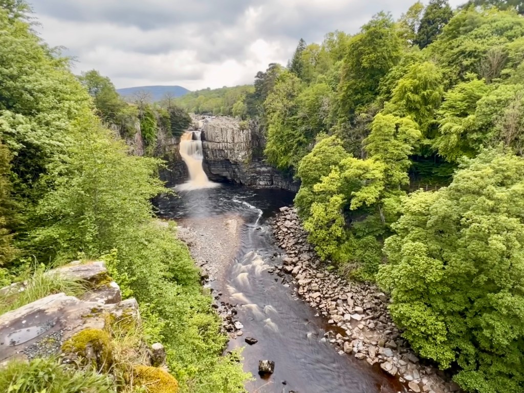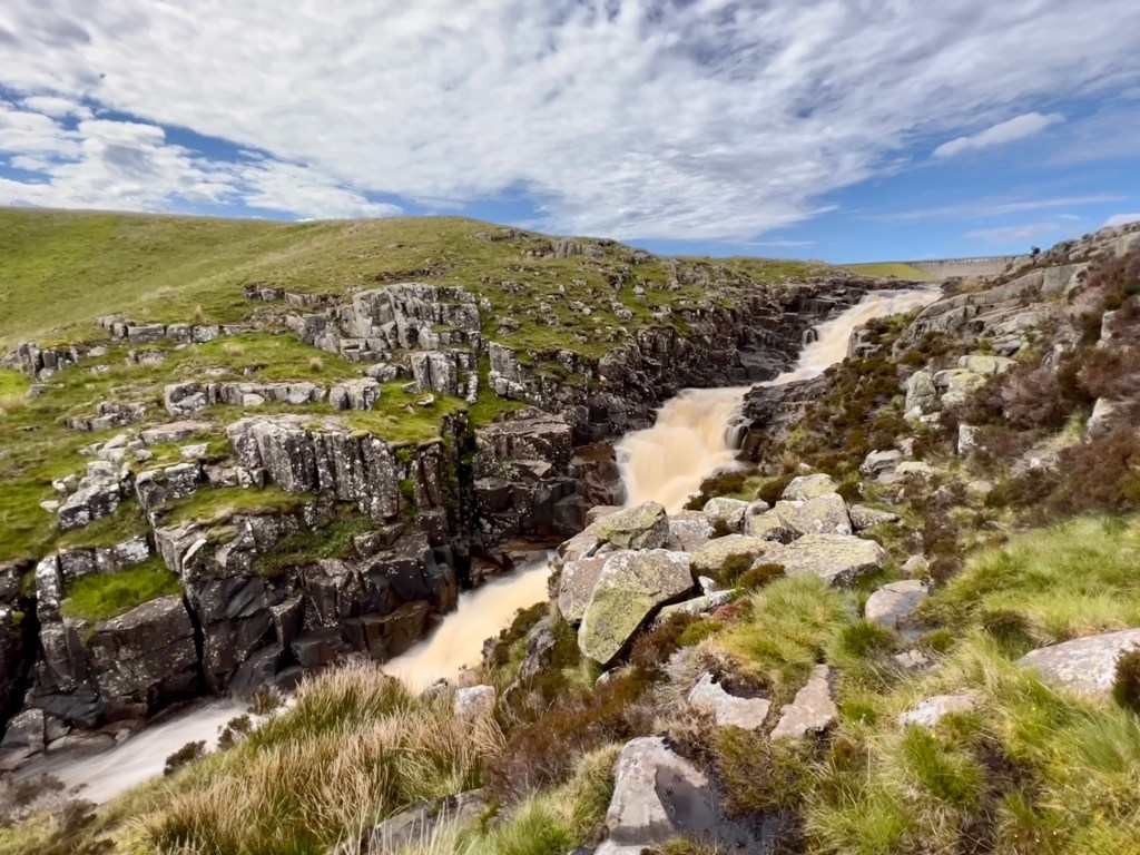After a few kilometres of this, we reached the second of the waterfalls, this one called High Force. Here the River Tees takes a running, joyful leap off a 70-foot cliff crashing its way down into the gorge below. Wainwright called this ‘the greatest waterfall in the country’ which is high praise indeed.