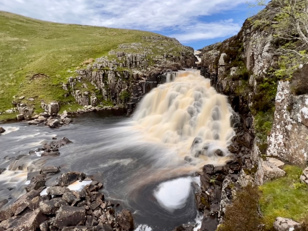 After a period of slipping, sliding and falling over boulders in an undignified manner we eventually reached the final waterfall for the day, the imaginatively named Cauldron Snout. This is very different in character from the other waterfalls and comes crashing down through a narrow cleft in Whin Sill with a thundering roar.