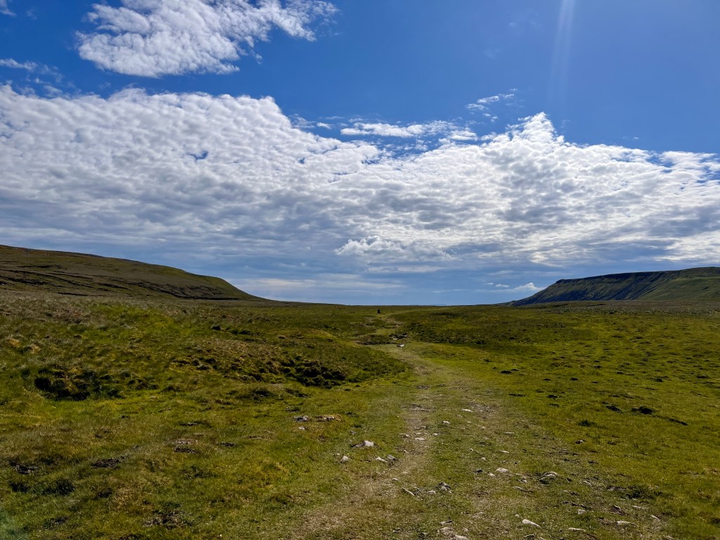 After a difficult, scary but short scramble up the rocks along the side of Cauldron Snout, the trail progressed into an easier path as we moved from County Durham into Cumbria. The next few kilometres became a bit of a slog and alternated between being easy to follow and a boggy, peaty quagmire.