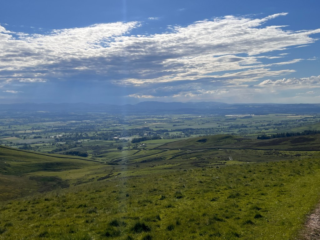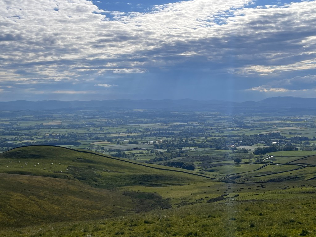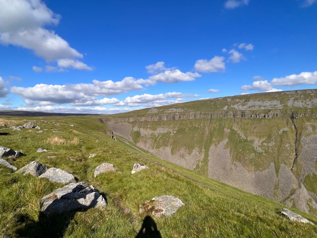 It was extremely windy up there so we took care to stay well clear of the drop as we took in the views. The Pennine Way has been going due west today so we have been walking directly towards the Lake District. Before us, we could see the Vale of Eden and onwards to the easternmost fells.